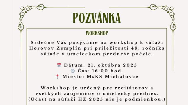 Srdečne Vás pozývame na workshop